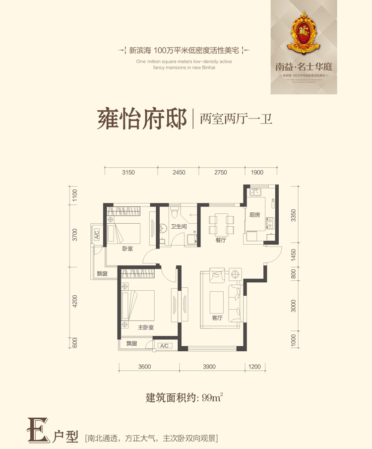 項目總佔地41公頃,總建築面積約100萬平米,住宅容積率1.8,綠化率35%,分爲7個地塊分期開發建設。項目住宅主要包括高層建築及7層到頂電梯洋房,建築外延均採用Art Deco風格,同時配以具有新古典主義特色的園林景觀系統,旨在打造濱海新區標誌性新古典主義建築羣,大幅提升濱海人居標準。